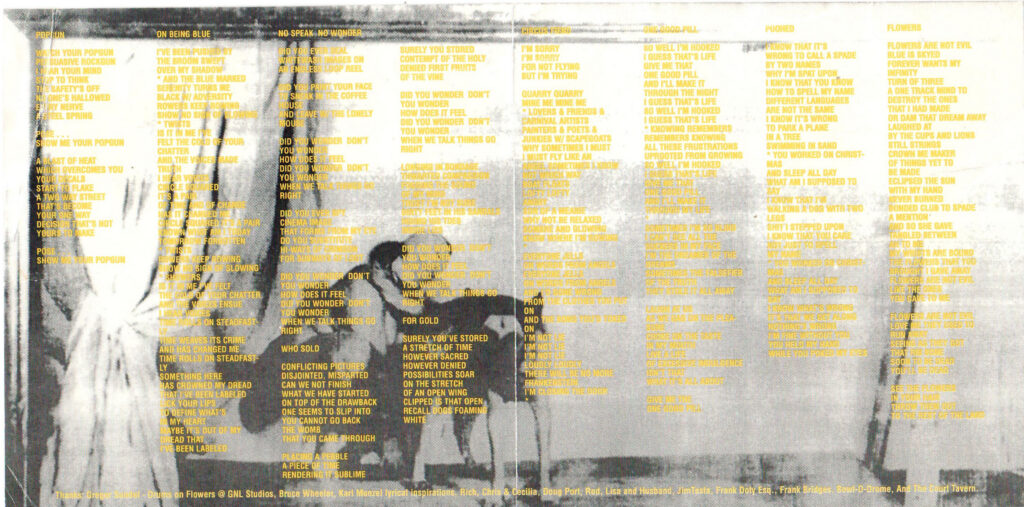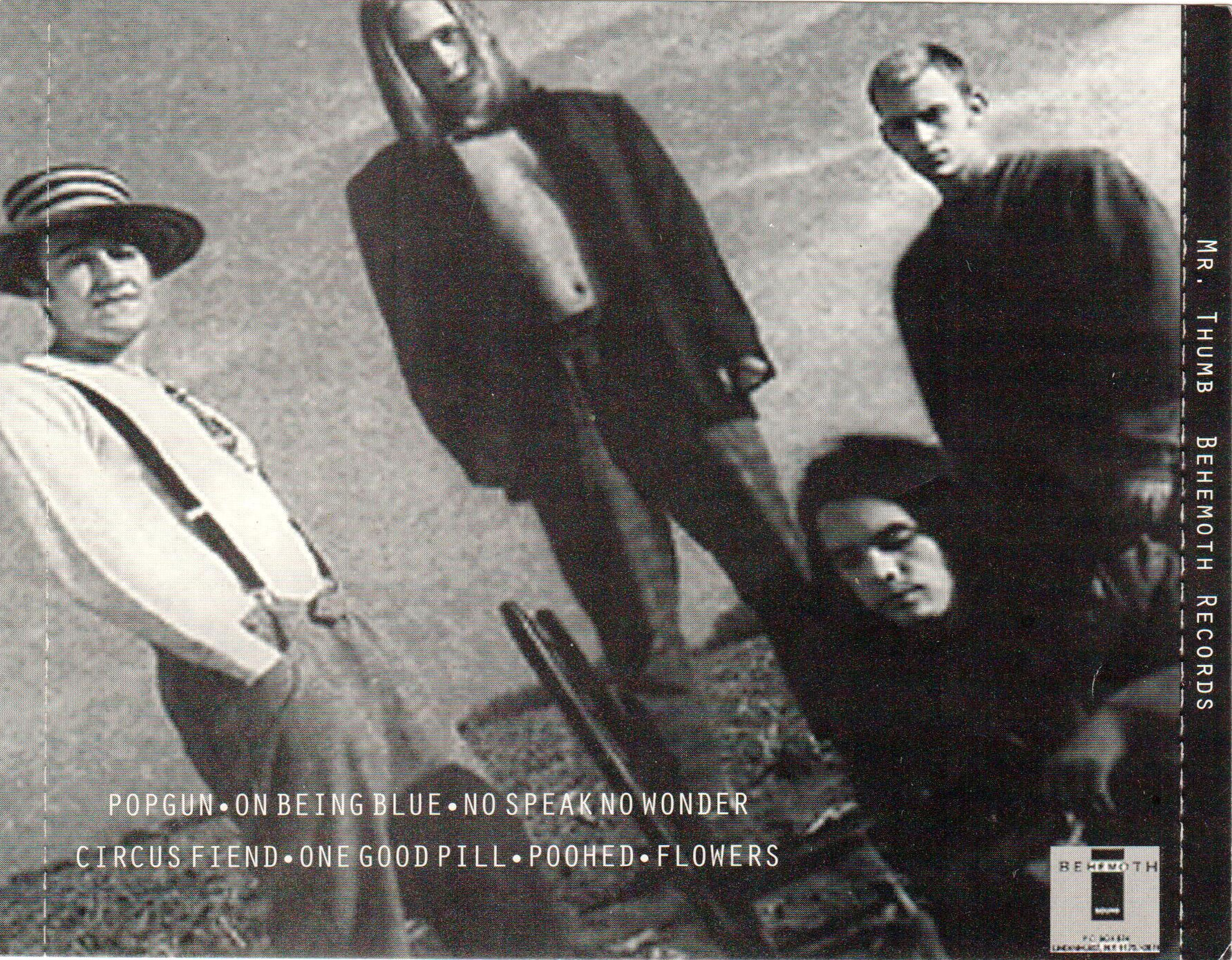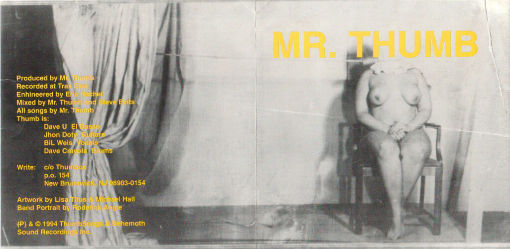 We had plans to release a 7″ and a full-length CD by Mr. Thumb, who a lot of people compared to Jane’s Addiction.  Their original singer quit and the band lost their “charisma“.  And though we had the CD cover/booklet printed,  we lost interest in the band and ended up not releasing anything by them.